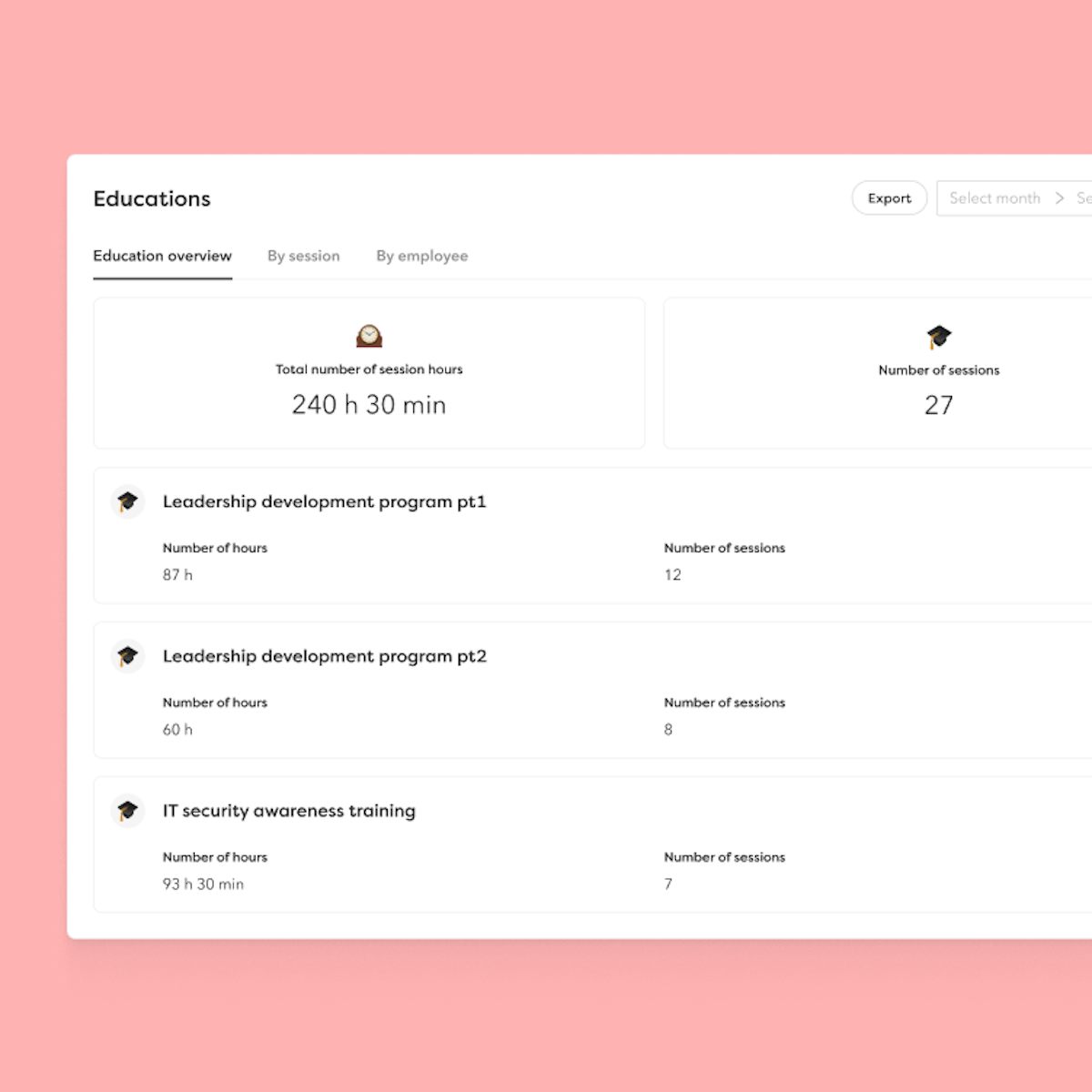 Good overviews create a clear picture of who has participated and when. Employees will be able to track their journey through their employee profile, and managers or those with permissions can use the overview to quickly filter out the employees or education sessions they wish to review.