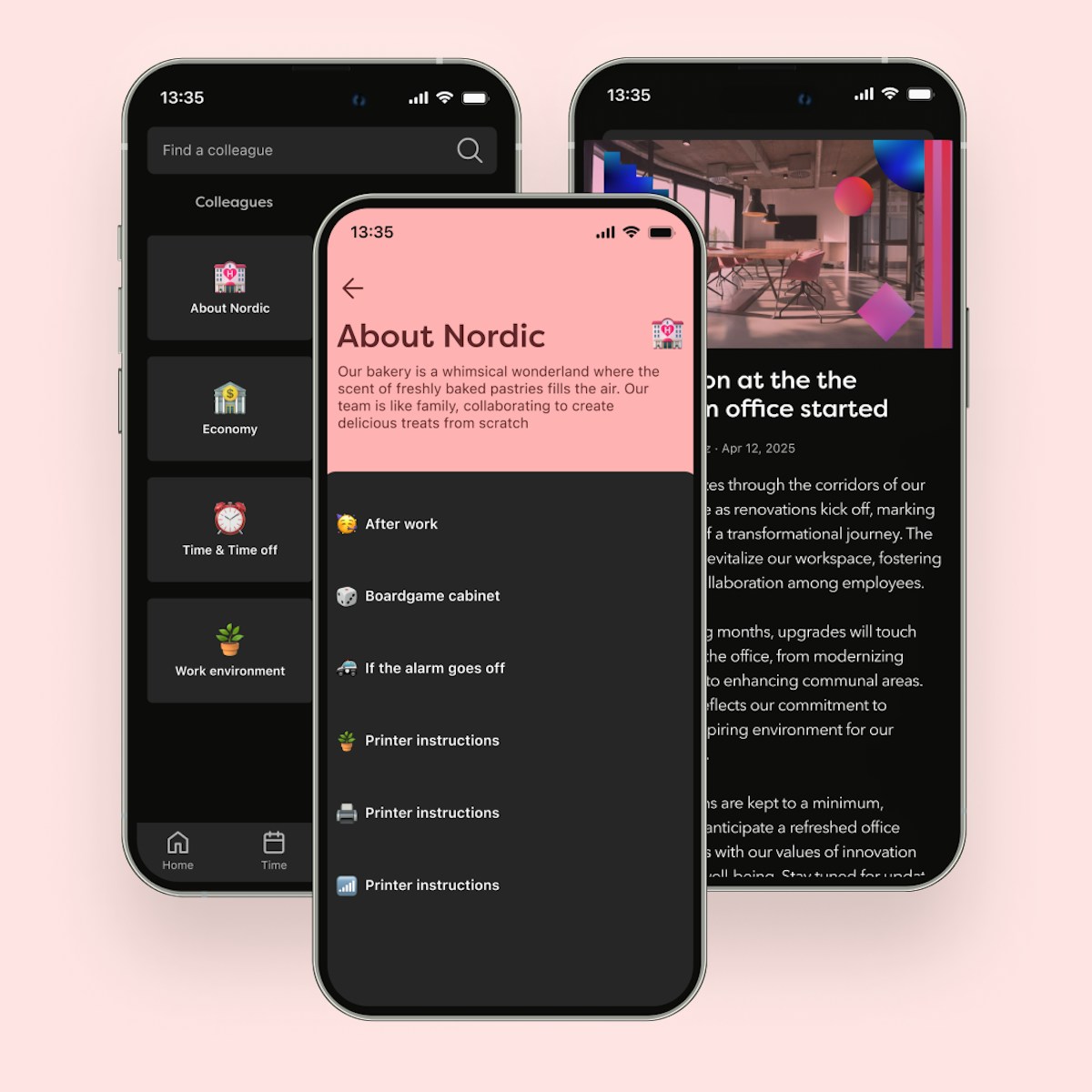 Hailey's app integrates naturally into your workday, whether or not you have access to a computer. Share important updates across the organisation quickly and collect employee data efficiently.