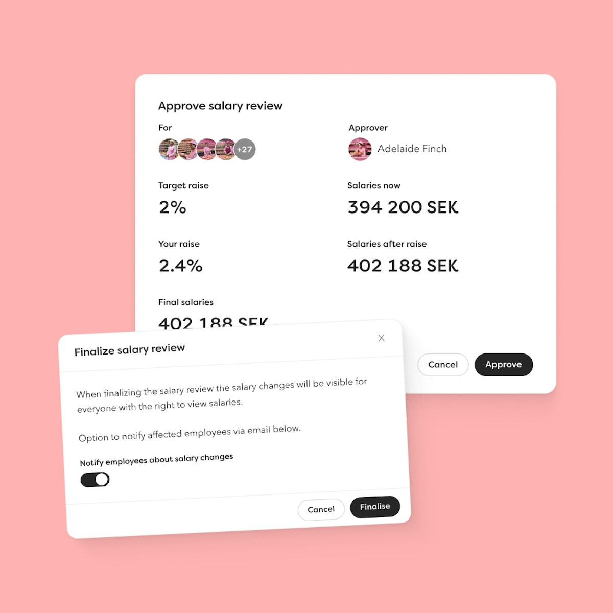 When the salary review is ready for final approval, notify employees about salary changes with the press of a button.