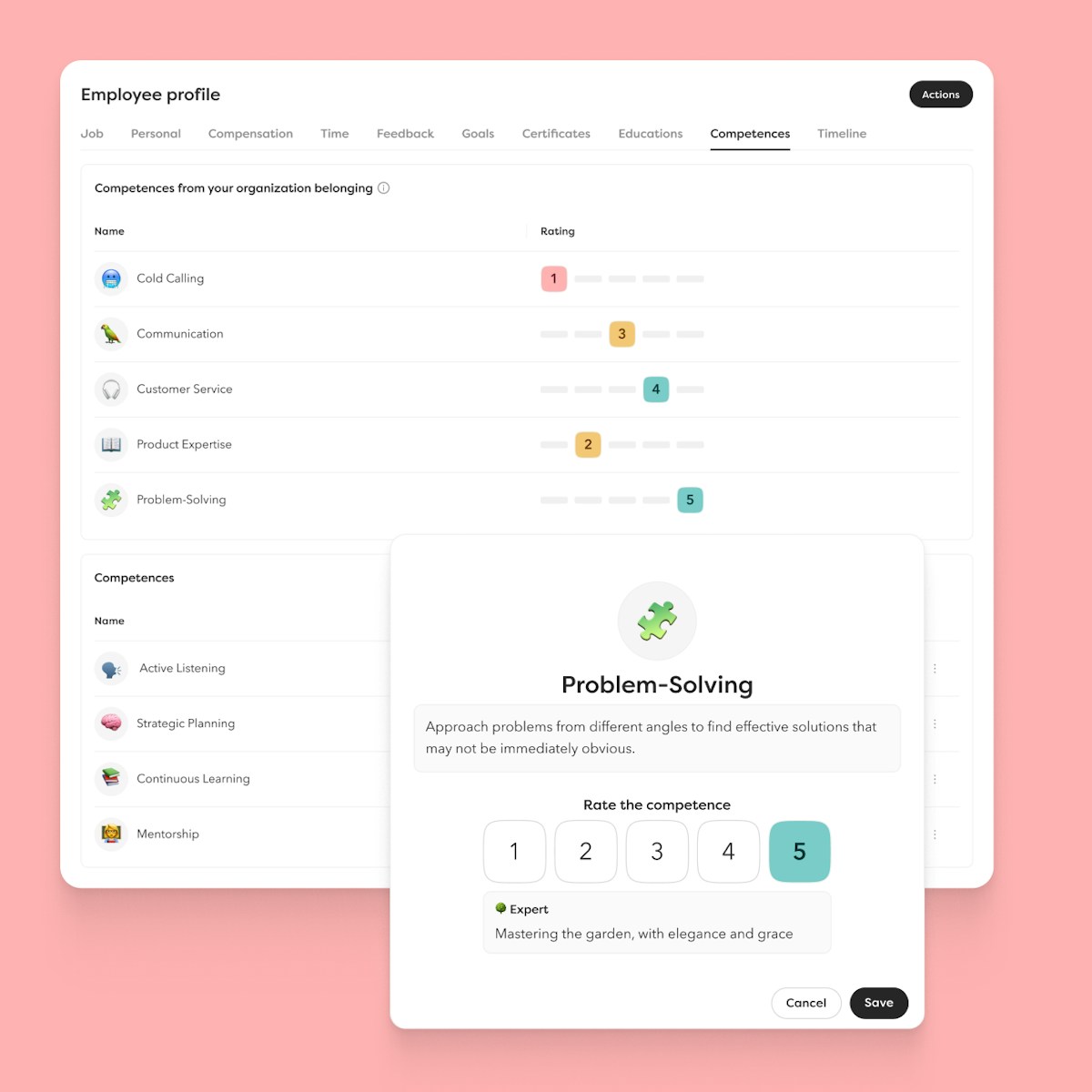👀 Clear overview: See all competences in a single view, with filters to help you spot any gaps.