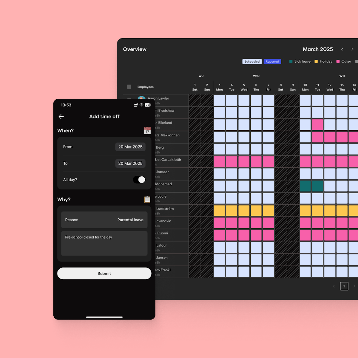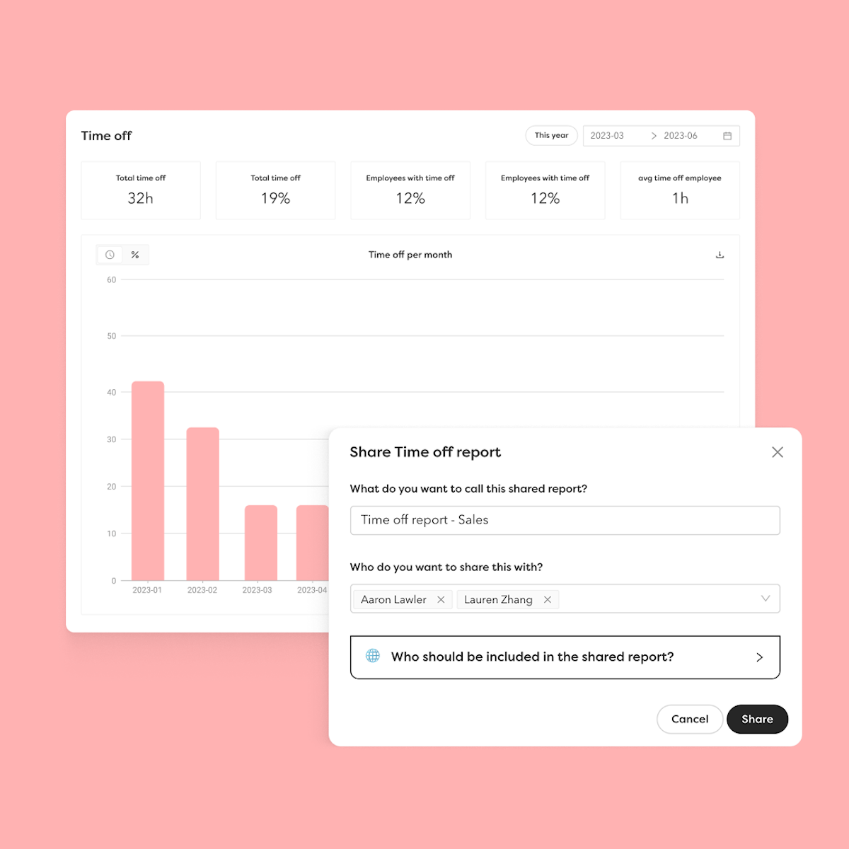 Smidiga frånvarorapporter gör datan enkel att föra över till lönesystem, och du kan dela rapporter med utvalda kollegor.