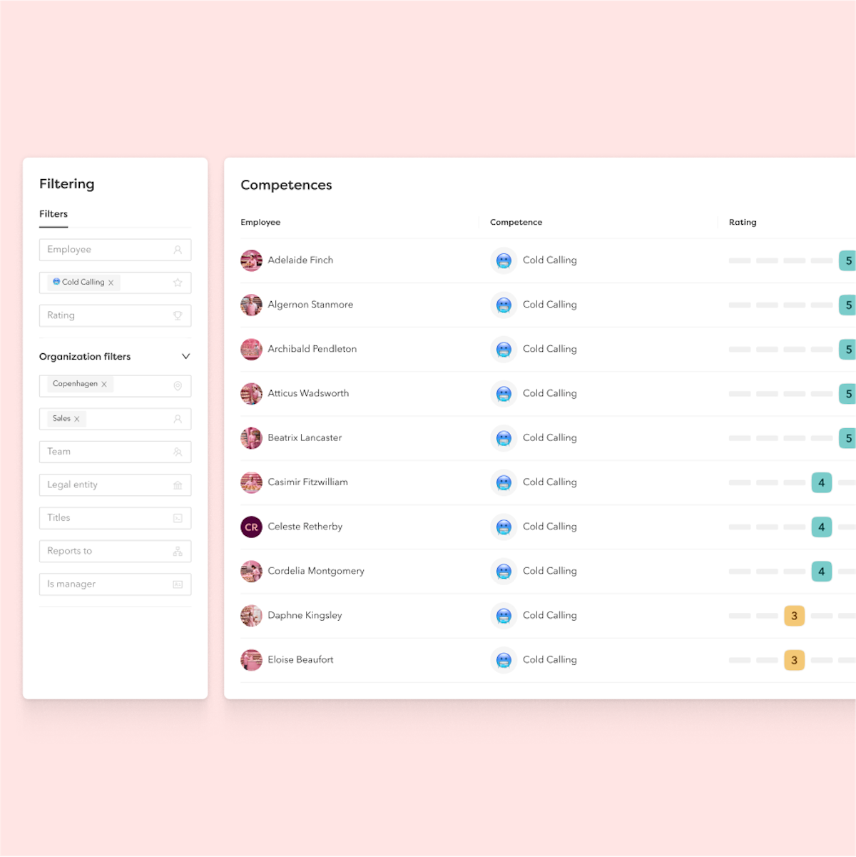Se alla kompetenser i en samlad vy, och använd filtreringar som hjälper dig att identifiera eventuella luckor.