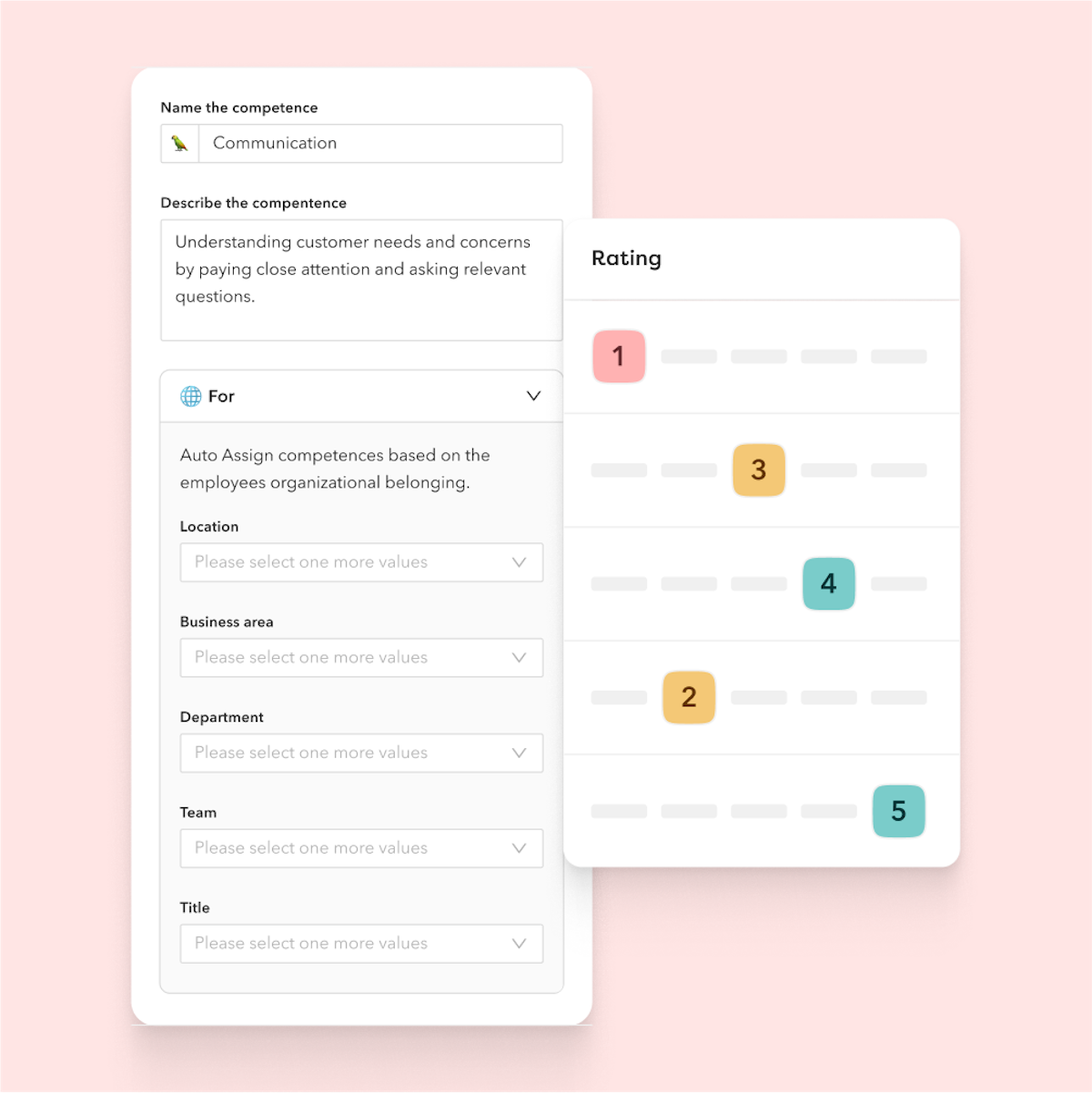 Lägg till kompetenser automatiskt för utvalda roller och organisationstillhörigheter, eller lägg till dem manuellt. Välj bland alla kompetenser för maximal flexibilitet.