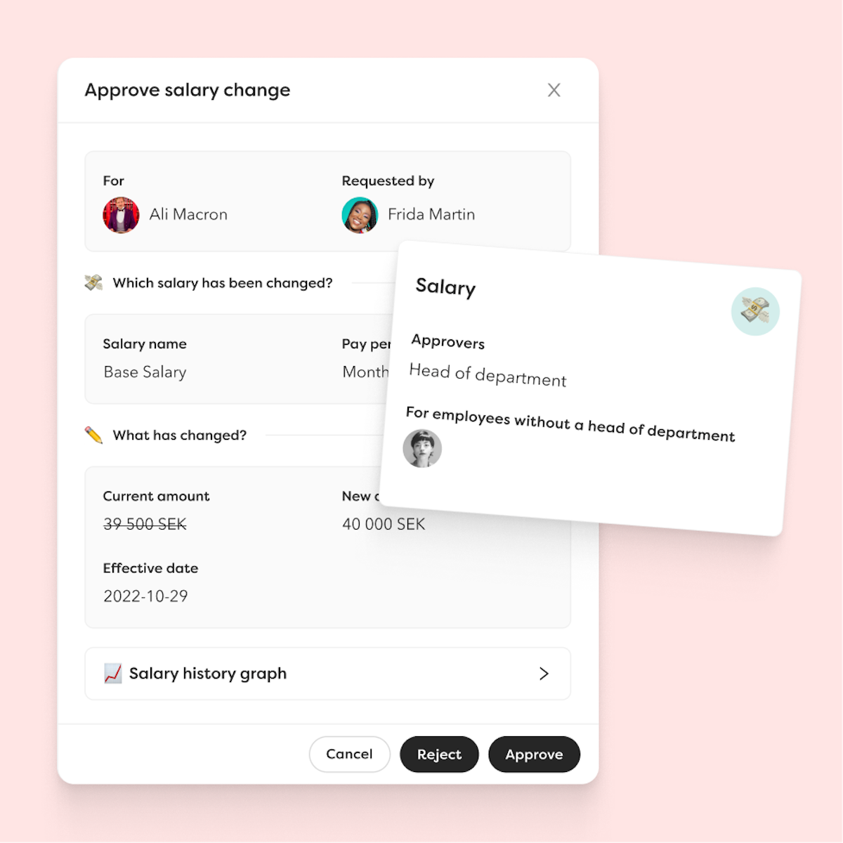 Alla organisationer har sina unika roller och ansvarsområden, och detta kan du enkelt spegla i Hailey. Du kan själv bestämma vem inom organisationen som ska ha möjlighet att se löner, göra ändringar eller godkänna lönejusteringar.