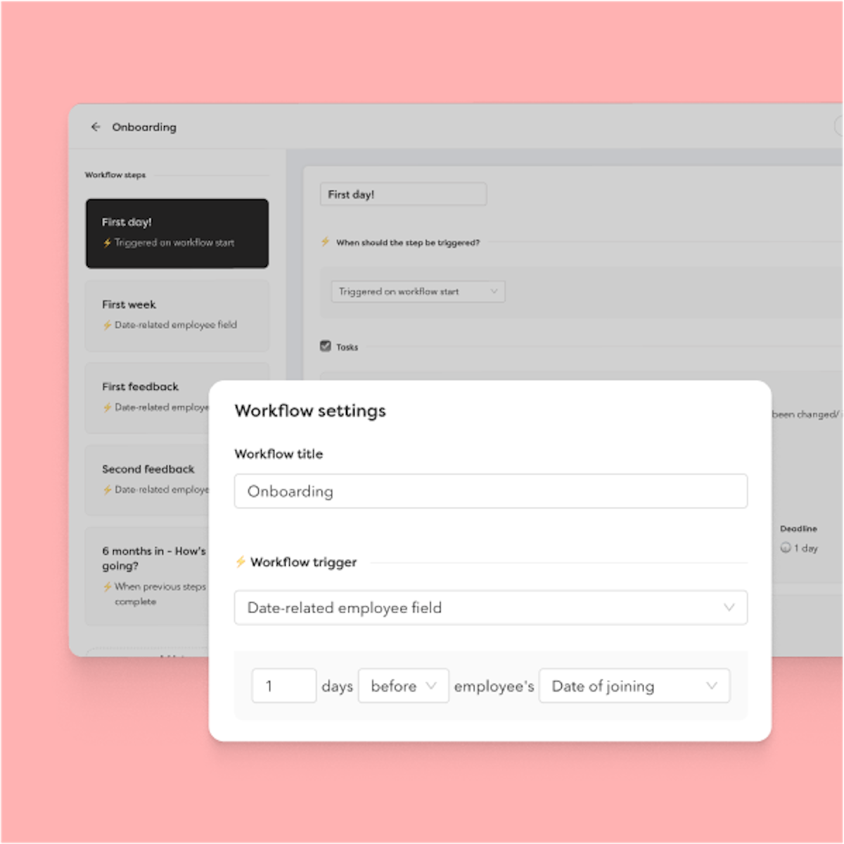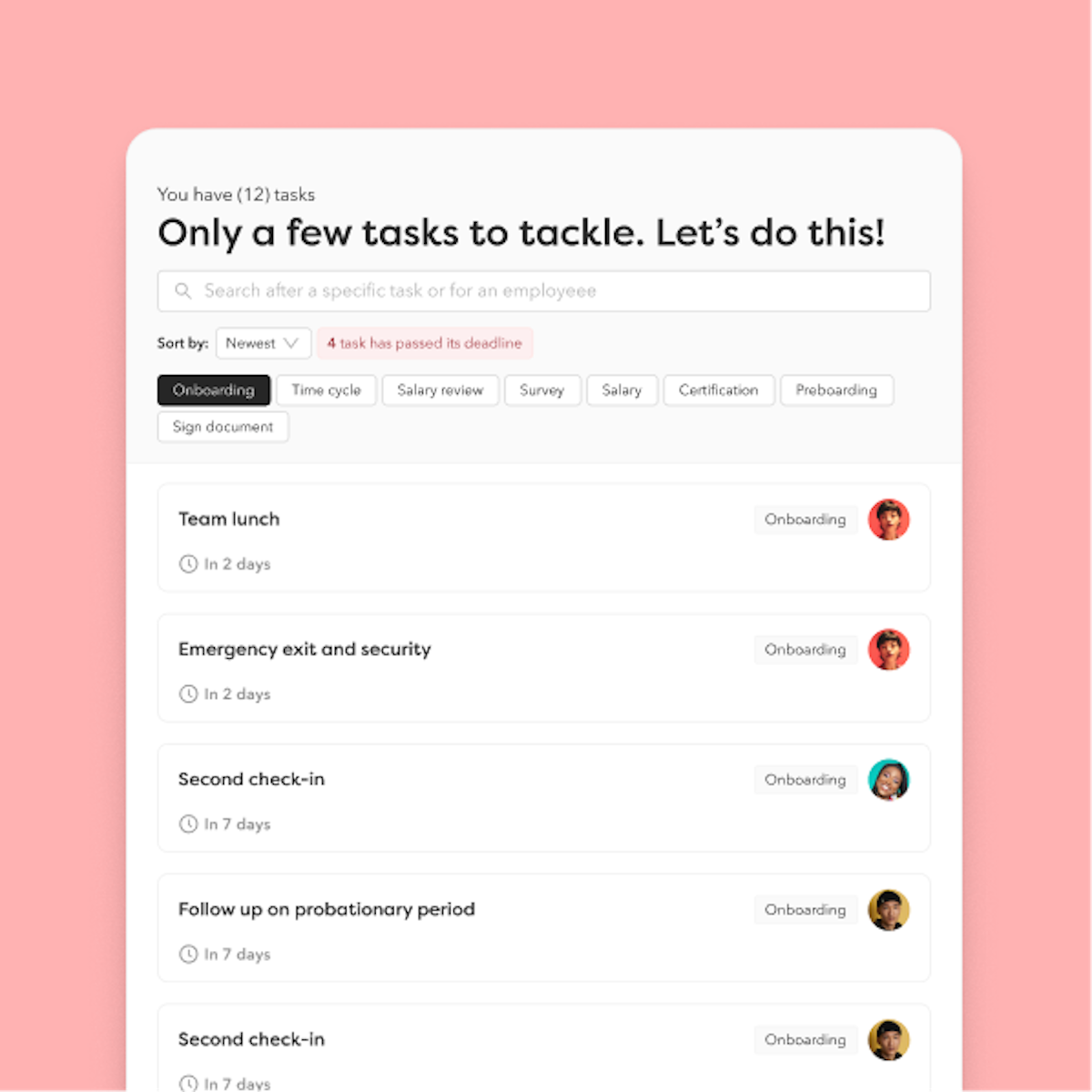 Digitalisera din checklista för att säkerställa att uppgifter skickas till rätt person vid rätt tidpunkt. Detta minskar stress för chefer och ser till att din onboardingprocess hanteras korrekt genom automatisering.
