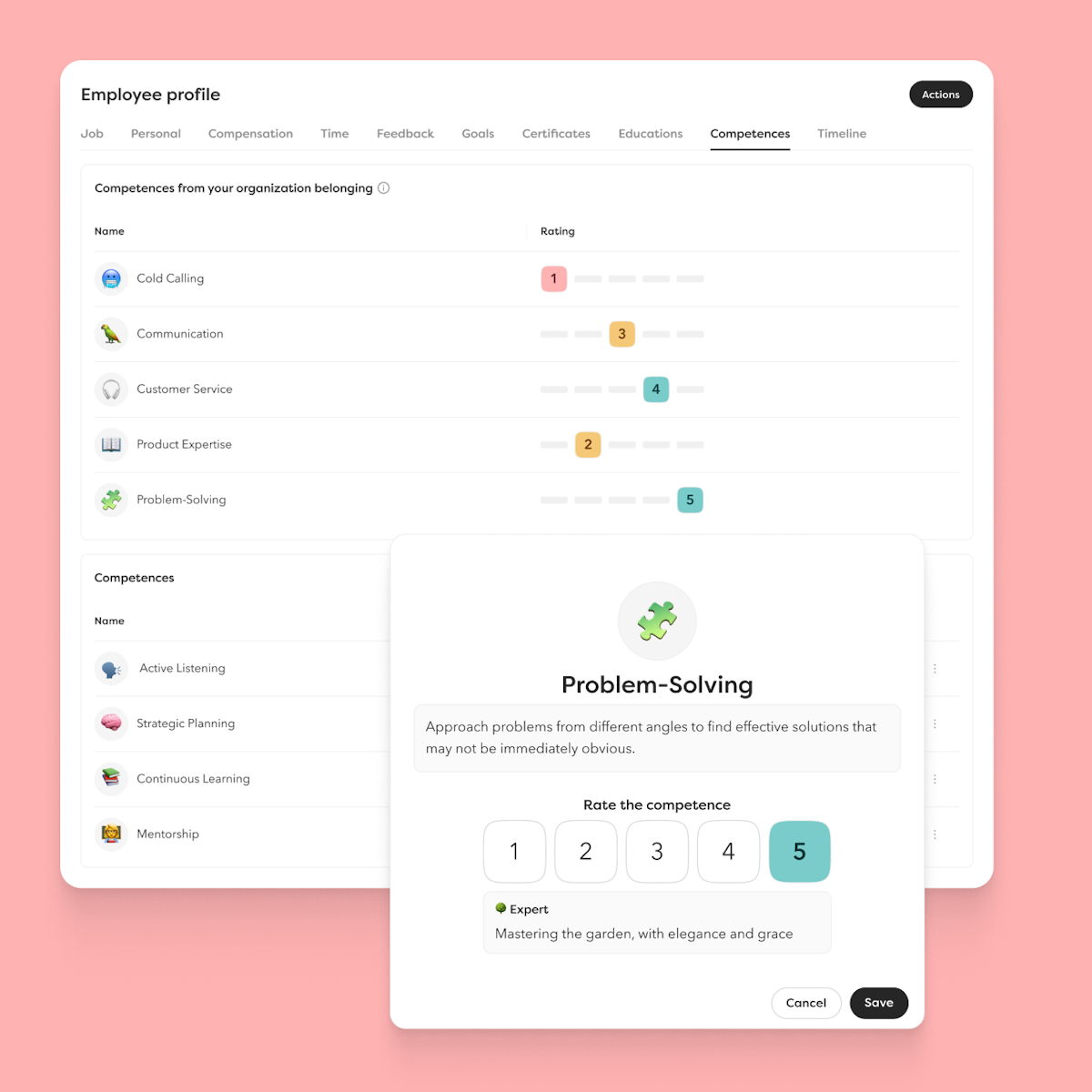 🏔️ Nivåer och bedömning: Använd fördefinierade kompetensnivåer för en smidigare process och bättre tekniskt stöd som gör kartläggningen enklare.